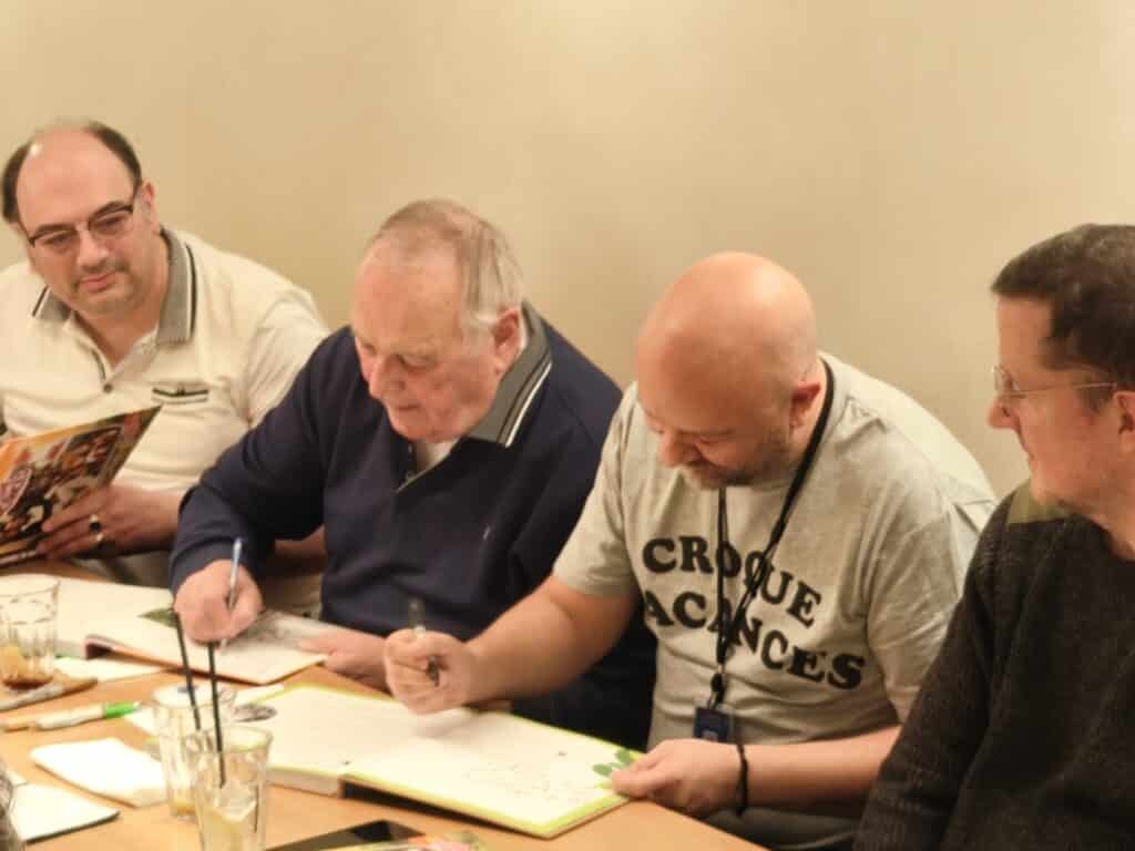 Avant de retrouver son public lors d’une immense soirée au Grand Rex, Claude Pierrard va rencontrer avec Arnaud Magnier une poignée de chanceux et de chanceuses pour un goûter qui faisait partie des contreparties de la campagne de financement du livre. Durant deux heures, les 9 « élus » ont pu échanger avec eux, se faire dédicacer leur livre, faire des photos.