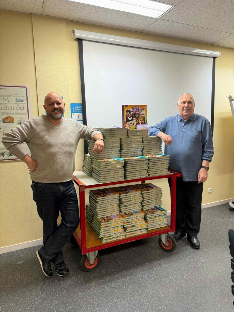 Raison pour laquelle Claude Pierrard est présent à Paris en cette fin de semaine. Outre l’enregistrement de numéros de La loi des séries, il doit aussi se prêter à un exercice intense : la signature des livres qui partiront ensuite par la voie postale chez les contributeurs qui ne peuvent se rendre à la soirée où le précieux ouvrage leur sera remis. C’est donc dans les entrepôts de Pulse que l’animateur a rendez-vous en compagnie de Arnaud Magnier, auteur du livre.