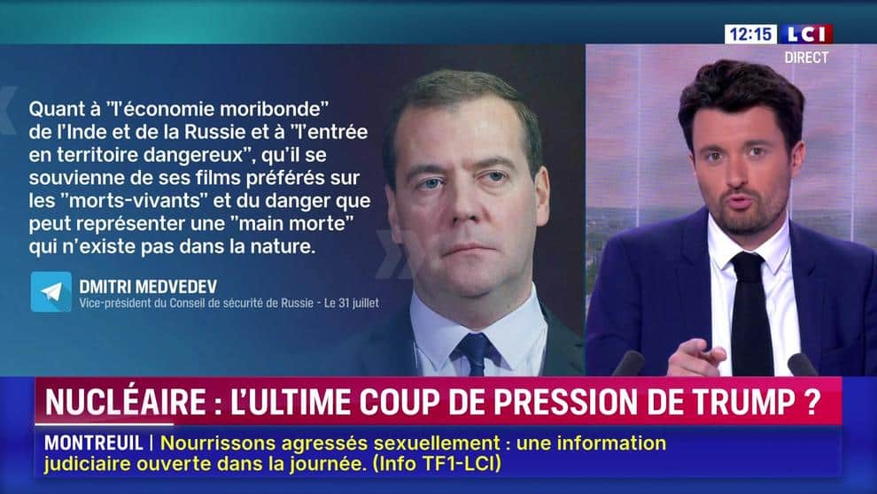 Le 31 juillet, l’ancien président russe Dmitri Medvedev a relancé une ancienne peur nucléaire. Sur son Telegram, il avertit Donald Trump, « Qu’il se souvienne de la dangerosité de la « main morte ». » Un message cryptique, accompagné d’un émoji railleur et d’une référence post-apocalyptique à la série The walking Dead.