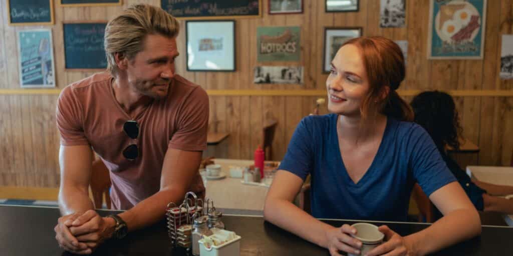 Ensuite, il y a Cal. Tout, chez lui, relève du fantasme romantique : grand, blond, taciturne, marqué par un passé douloureux. Mais la série évite d’en faire un simple cliché : Cal (c’est un plaisir de retrouver Chad Michael Murray  – Les frères Scott – dans le rôle) est un homme blessé, qui craint autant l’amour qu’il le désire.  Le spectateur sait dès le départ que Maggie et lui finiront ensemble, mais là n’est pas l’essentiel. Ce qui compte, c’est le chemin : lent, hésitant, ponctué de malentendus, à mesure que chacun apprend à faire confiance, à laisser tomber ses défenses et à accepter d’être vulnérable.